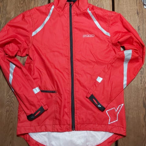 Vuorellinen pyöräily takki hyvässä kunnossa. Etupuolella pari pientä mustaa tahraa. Kaikin puolin toimiva. Jäi itselle pieneksi.