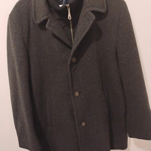 Vuorellinen siisti villakangastakki, kotimaisen Turo-merkin tekemä. 2 povitaskua, etutaskut ja rintatasku. 2 nappia edessä.