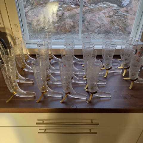 Uutta vastaavassa kunnossa olevia, käyttämättömiä Iittalan valmistavia, Valto Kokon suunnittelemia Haraldin sarvi -olutlaseja 2 kpl.