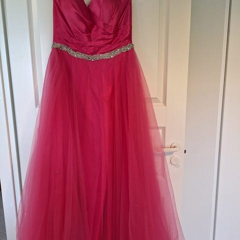 Hyväkuntoinen kaunis mekko. Koko uk 6 eli vastaa kokoa 38. Takana kiristysnauhat jolla kokoa voi hiukan säädellä.Alushame kuuluu hintaan. Voi käydä sovittamassa.