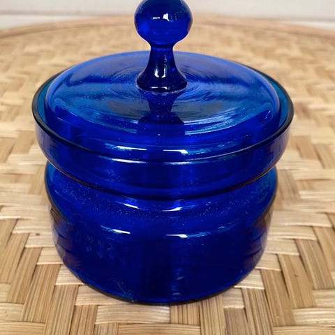 Sirkku Kumela-Lehtosen koboltinsininen lasipurkki