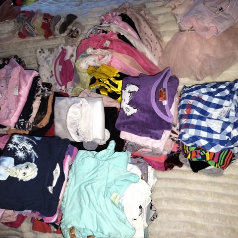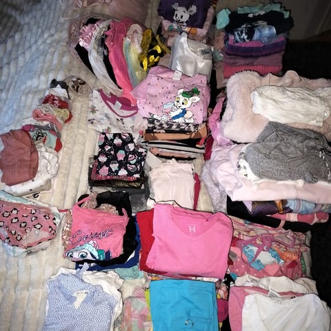 Myydään tytön vaatepaketti, koko 104. Sis: uusi talvitakki, käytetty talvitakki, ulkohousut, mekko, T-paitoja, sortsit, pitkähihaisia paitoja