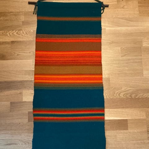 Vanha villalangasta kudottu raanu syksyn väreissä.