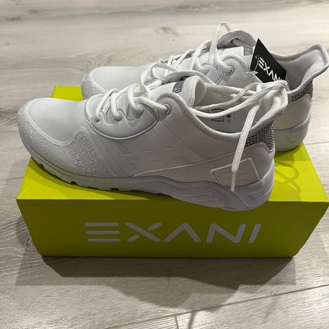 Uudet Exani kengät, kapeahko malli koko 43 (42,5) Väri puhdas valkoinen.