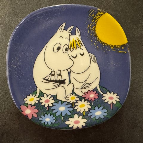 Avainsanat: arabia, seinälautaset, koristelautanen, koristelautaset, koriste, koristeet, seinäkoriste, muumi, muumit, perhe, vene, sininen, vaaleansininen, keräily, ysäri, 1990-luku