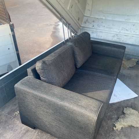 Sotka Robin mekanismisohva, ruskea väri. Kaikki pinnat ehjiä mutta vasemmalla puolella istuinosassa pientä painaumaa.