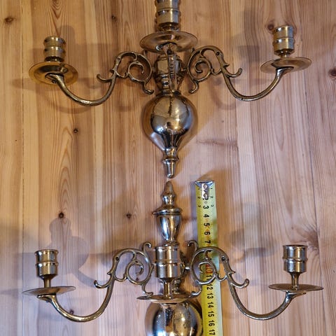 Kaksi kpl 2-haaraista seinäkynttelikköä. Korkeus n. 32 cm.
