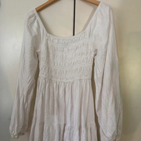 Bik Bok Kesämekko on valmistettu 100% orgaanisesta puuvillasta. Mekko on valkoinen, koko S, ja siinä on olkapäät paljastava malli sekä röyhelöhelma.