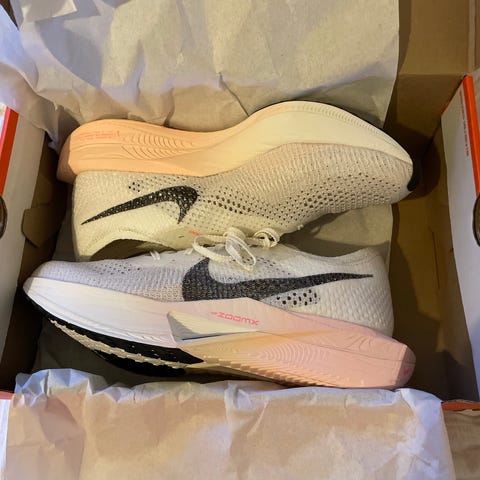 Myynnissä olisi täysin uudet, minulle ylimääräiset Nike ZoomX Vaporfly Next% 3 pomppukengät edullisesti. Väri on musta/kulta.