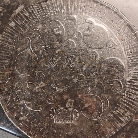 Käyttämättömiä virheettömiä Iittalan Kotipizza lasilautasia 13 kpl pizzateemaisella kuviolla, halkaisija 30 cm, kirkas lasi. Valmistus 1990-luvulla. 20€/kpl. Tarvittaessa kulkee kyydissä omien reissujen ohessa pitkin Pirkanmaata.