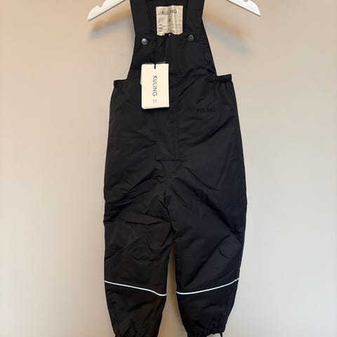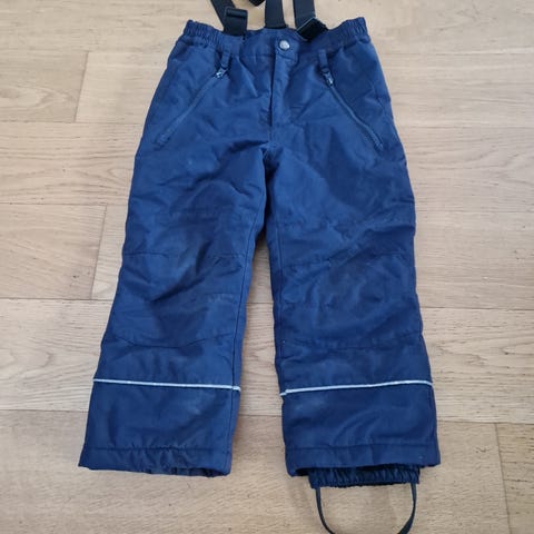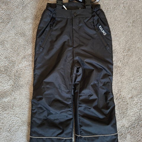 Kuling toppahousut, vahvikkeet pepussa ja polvissa sekä kumiset jalkalenksut. Koko 110, mutta on reilua mitoitusta. Ehjät ja siistit. Eläimetön koti.