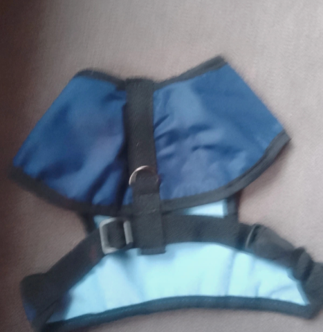 Pienen koiran sadetakki, selkämitta 38cm. Tarrakiinnitys, huppu.