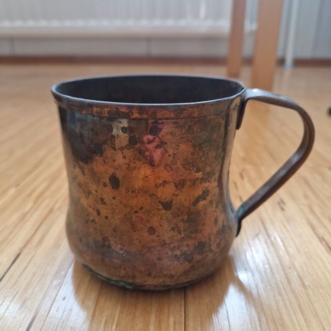 Ovaalinmuotoinen kupariruukku, korkeus 11 cm, leveys 19 cm. Nouto Salosta tai Turusta.