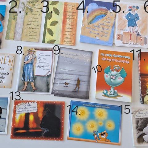 Iso setti uusia kaksiosaisia kortteja, näissä kuoret mukana.