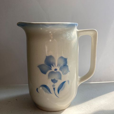 Arabia heluna kannu, lasitteessa on hieman ajan tuomaa krakeloitumaa, muutoin ehjä ja siistissä kunnossa.