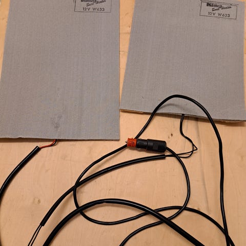 Musta sähköllä lämmitettävä istuinalusta, jossa on säädettävä hihna. Virtakytkin ja johdon pituus mahdollistavat helpon käytön ja liittämisen 12V virtalähteeseen. Myydään kaksi kappaletta
