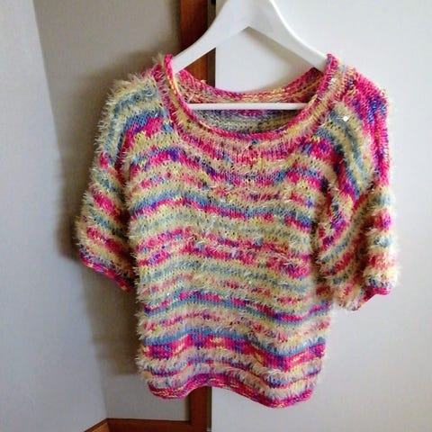 Itse neulottu pusero. Kuvio neulottu nurjilla silmukoilla. Lankana 7 veljestä