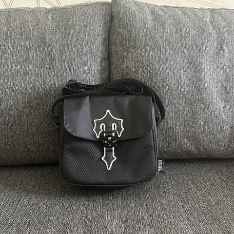 Trapstar laukku kulunut aika paljon joskus ostettu pandabuyista 30€ logo on heijjastava.
