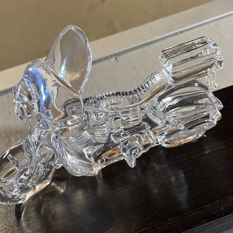 Todella tyylikäs rautalangasta väännelty moottoripyörä kumisilla yksityiskohdilla.