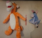 Tiikeri ja Ihaa Nalle Puhista, maksu käteisellä, lapset myy lelujaan.