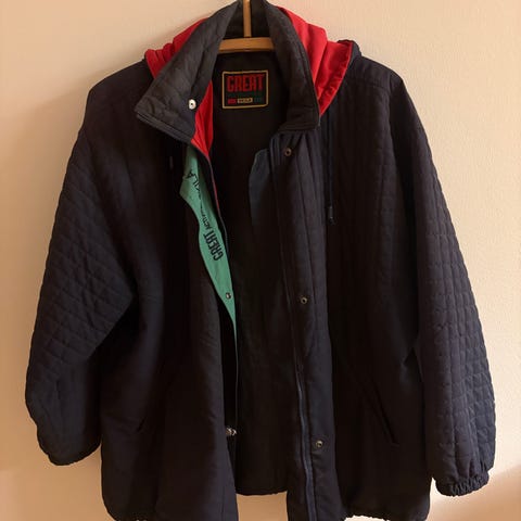 Värikäs ulkoilutakki noin 42-kokoiselle naiselle.