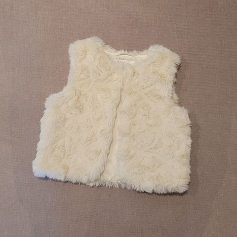 lasten vaaleanpunainen karvainen liivi, koko 104, suunniteltu tytöille. Liivi on valmistettu pehmeästä ja lämpimästä materiaalista, sopii viileisiin säihin ja tarjoaa lisälämpöä vaatteiden päälle.