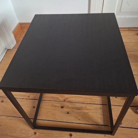 Kuvan mukainen täyspuu pikkupöytä. Myynnissä myös samaan sarjaan kuuluva sohvapöytä.