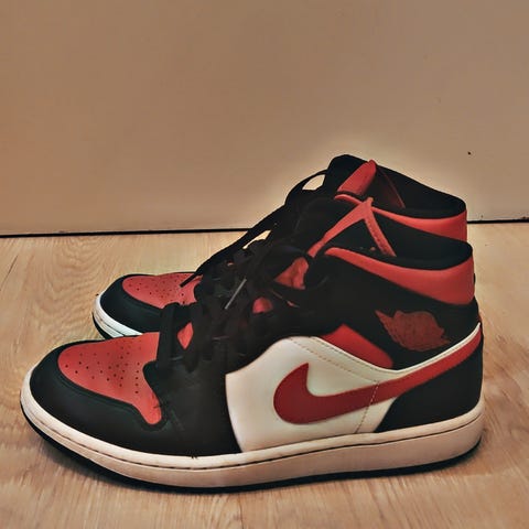 Käytetyt Jordan 1 Mid Wolf Grey Black White.