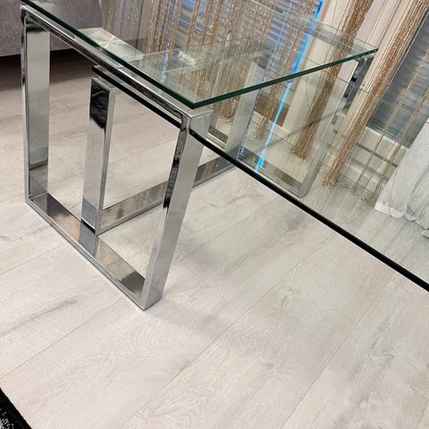 Kuvan mukainen sohvapöytä. Päällä valkoinen lasi. Myynnissä myös samaan sarjaan kuuluva pikkupöytä. Vain nouto
