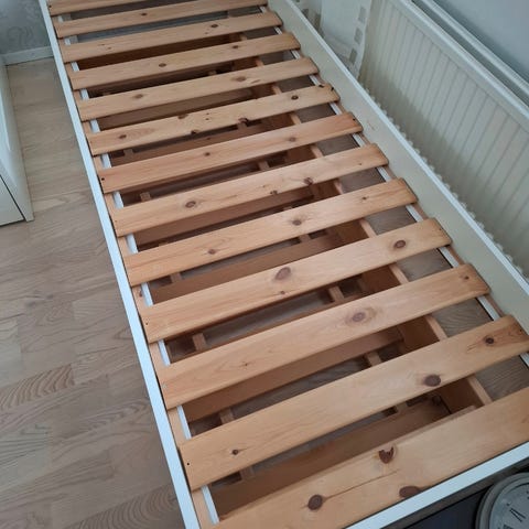 Ei ole ollut kauaa käytössä nämä, sänky on jo ollut toisella ihmisellä aijemmin mutta toimii siis hyvin edelleen. Sänky on leveämpi kuin 90cm koska on leveämmät sivut.