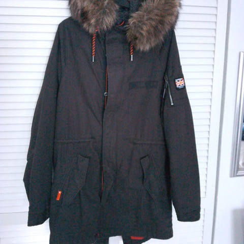 Vetoketju vähän rispaantunut, käytön jälkiä ei suurempia ole, pieniä tahroja tietty löytyy helmasta.