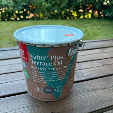 Avaamaton, uusi terassiöljy (Väritön, ostettu kesällä 2025) sekä kaikki tarvittavat työkalut levitykseen (Kaikki uusia, käyttämättömiä). Sisältää sudin, terassiöljylastan, lastalle jatkovarren, sekä astian levitykseen.