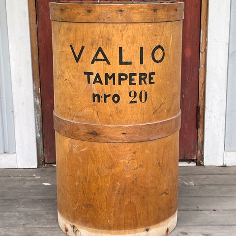 Hyväkuntoinen, ehjä juustoboksi, lakattua koivua.