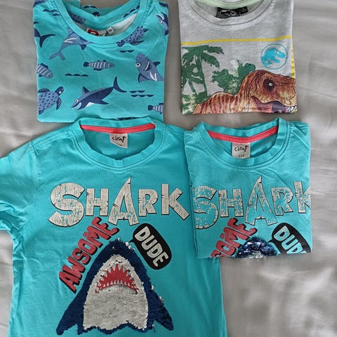 Myydään T-paita setti sisältäen 4 T-paitaa. Voit myös ostaa toki erikseen 2€/kpl tarjouskaupalla. Merkit pomp de lux, name it, lupilu ja hampton republic. Postitus / toridiili tai nouto Espoon kaupunginkallio, Espoon keskus tai Helsingin Töölö