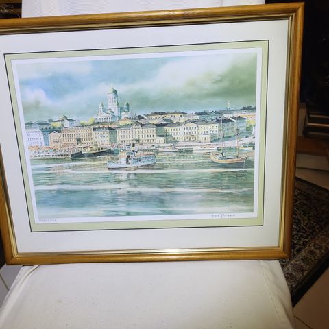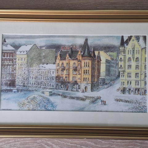 Kimmo Pälikkö maisemamaalaus, jossa Keravanjoki ja 1862 perustettu Langobackan tehdas, Teos on kehystetty ja lasitettu,signeerattu taiteilijan toimesta. Kuvassa näkyy vanha teollisuusrakennus ja Keravanjoen talvimaisema,kaunis virheetön signeerattu teos. pk 10.90€