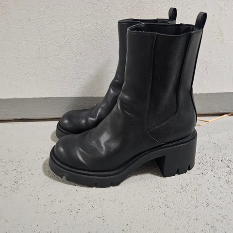 Upeat ja uuden veroiset korkea korkoiset, paksupohjaiset nilkkurit/ saappaat. Kiiltäväpintaista keinonahkaa. Koko 40. Yhdet juhlat juhlittu näillä. Mukavat jalkaan.