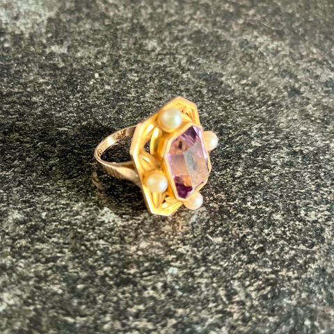 Eero Rislakin suunnittelema upea Vintage kultasormus 70-luvulta, iso kauniisti hiottu ametistikivi, sormus uuden veroinen, jossa ei ole nimikointia