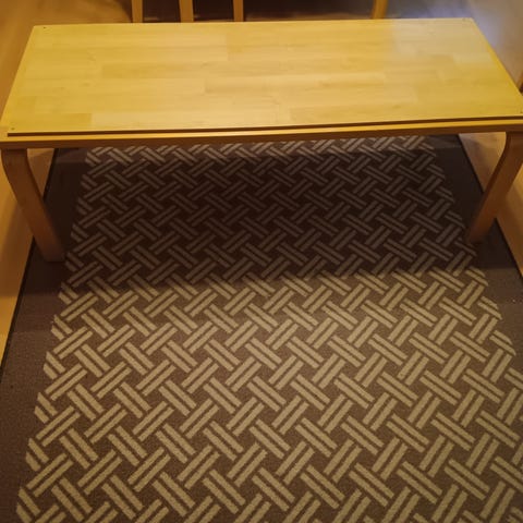 Pöytä, taso, koivua, päällä koivulevy, Alvar Aalto?