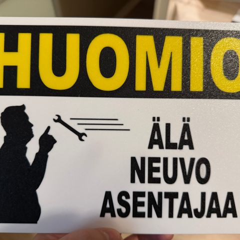 Kyltti: Huomio - Älä neuvo asentajaa, 19x25 cm
