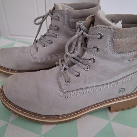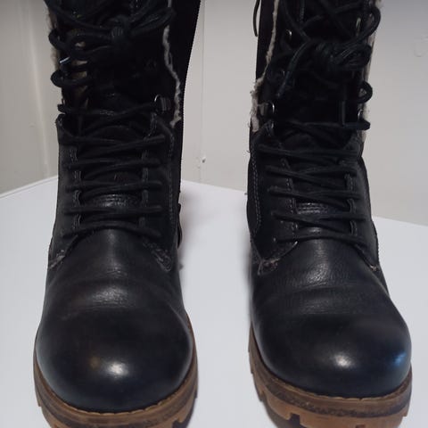 Tamaris talvikengät, mustaa nahkaa. Sisällä lämmin vuori. Koko 38. Pitkät vetoketjut sekä ulkosyrjällä yläreunassa lyhyet vetoketjut, joilla saa tarvittaessa lisätilaa pohkeeseen. Kenkä hyvä kapealle ja sirolle jalalle! Normaalia mitoitusta. Pohkeen mitta 38-39 cm ja tuon ulkosyrjän vetoketjun ollessa auki, mitta on 43 cm. Postitus onnistuu!