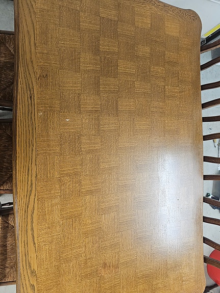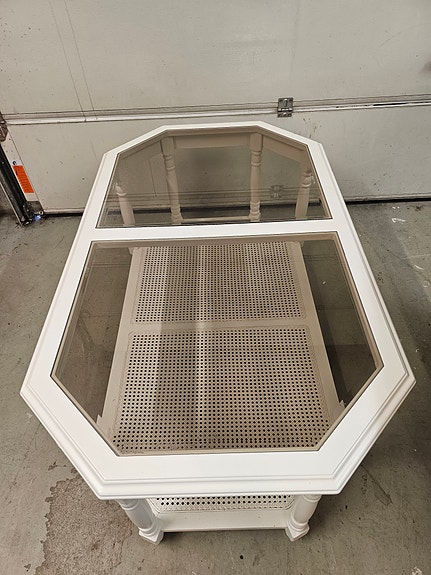 Yleisilmeeltään siisti antiikki senkki. Takaseinäissä muutama epäsiisti reikä mistä viety johtoja läpi. Kannesta otettu koriste lista takaa pois, josta jäännyt eri värinen alue pöytälevyyn ja kaksi pientä ruuvin reikää. Leveys 220 cm syvyys 52 ja keskeltä 57 korkeus 97 cm.