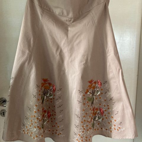 Lindex -merkkinen hyväkuntoinen minihame, jossa valkoisella langalla koristetikkaukset. Koko 40. Alushame. Vetoketju sivussa.
