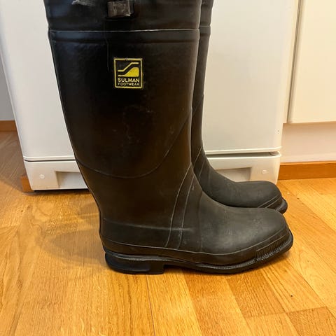 Myytävänä kerran käytetyt Kamik-merkkiset miesten kumisaappaat.