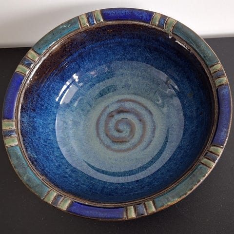 Kuvassa 3 näkyy kai tekijän signeeraus. En tiedä kuka on. (Kuvassa 3 kulhon väri näyttää erilaiselta kuin kuvassa 1, jossa näkyy oikea väri.)