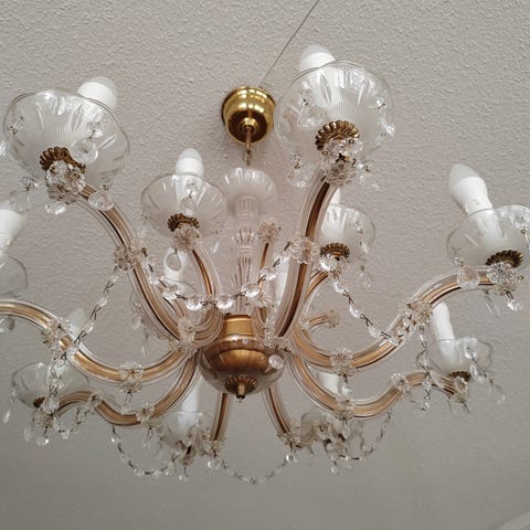 Toimiva Krebs merkkinen kattokruunu 3 lampulla. Väri alunperin messinki, mutta maalattu mustaksi. Uutena maksanut n. 800€.