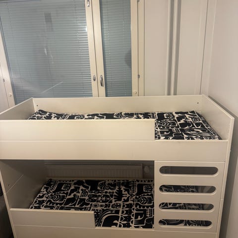 Myydään valkoinen Avaroomin Ava-kids kerrossänky alalaatikolla.