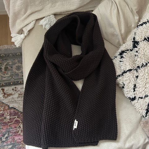 Uusi, laput kiinni. Harmaanbeige väri, reilun kokoinen. Puuvillaa.