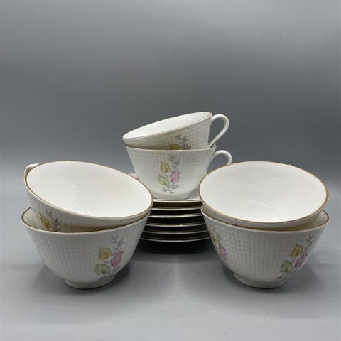 vintage vintagea retroa kahvikuppi aluslautanen alunen alulautanen asetti tassi teevati kahvikupin vati kupinalunen kahvikupinvati 1950 luku 1950-luvulta