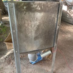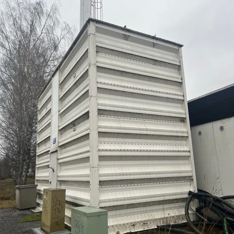 Pellettisiilo, + pellettipoltin + kuljetin. Toimintakuntoisena poistettu käytöstä. Siilo sinkittyä peltiä,