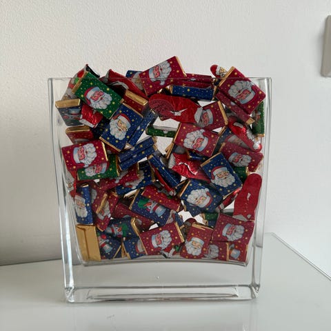Punainen konjakkilasin muotoinen kulho. Korkeus 29 cm ja suuaukon halkaisija 19 cm. Kausivalot sisään luomaan jouluista tunnelmaa. Vain nouto.